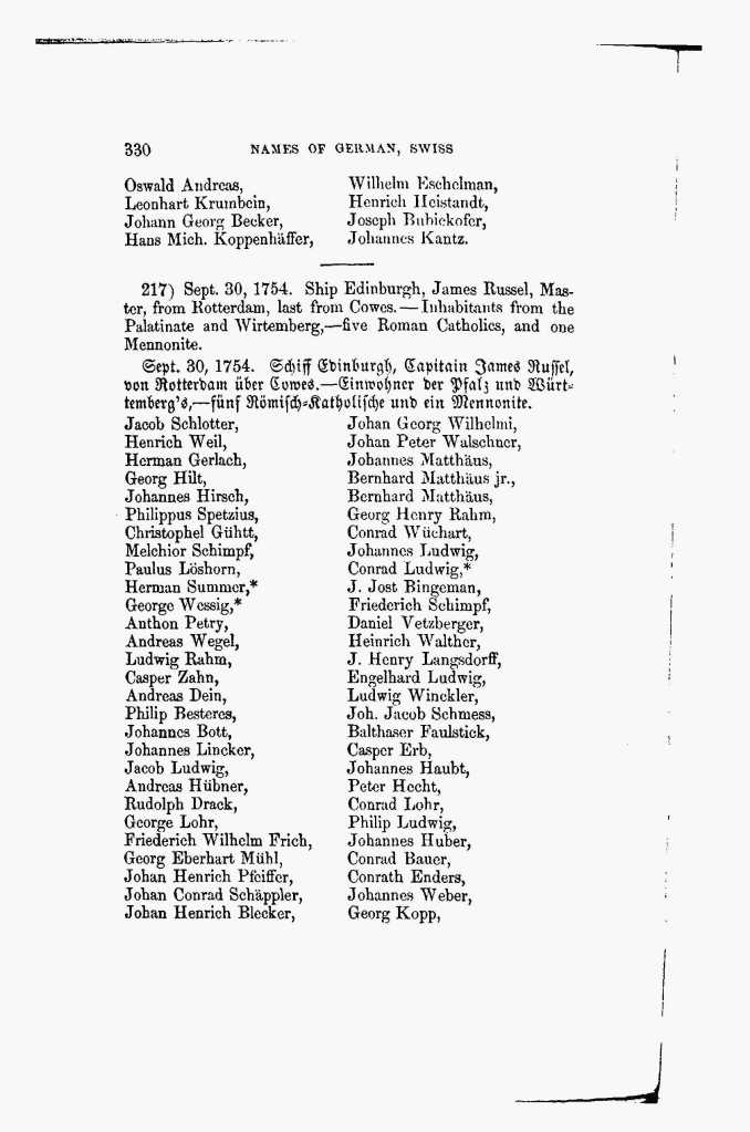 Casper was born in Baden-Wurttemberg, Germany in 1724. At thirty years of age, already well into adulthood, he traveled to America aboard the ship “Edinburg,” arriving in Philadelphia September 10, 1754. We are fortunate to have record of his travels:
