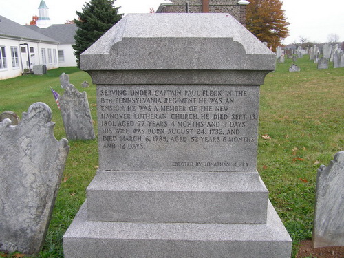 Casper and his first wife are buried at New Hanover Lutheran Church, the oldest German Lutheran church in North America. Its cemetery boasts dozens of headstones with the name Erb. Casper seems to have been given a greatly upgraded headstone years after his death, including details of his life and military career. However, the genealogy provided above casts doubt upon his purported military involvement, and I have honestly not found any records indicating that this Casper was indeed involved in the War for Independence.