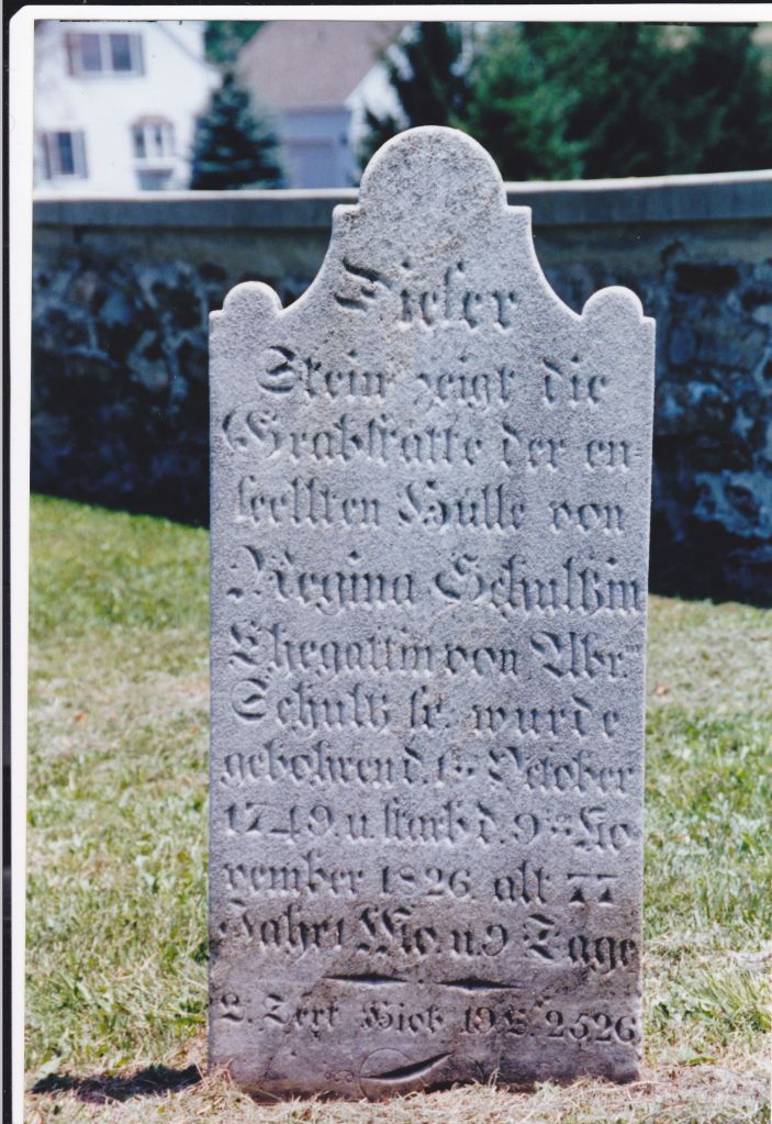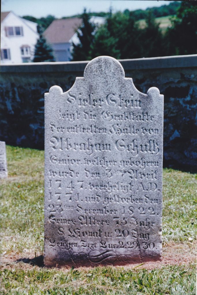 Abraham was the oldest child of George and Maria Schultz, and first generation of the line born in Pennsylvania. He was born on his father’s plantation in Upper Hanover, Montgomery County. He married Regina Yeakel, and the couple had six children. Both are buried at the Washington Schwenkfelder Cemetery.