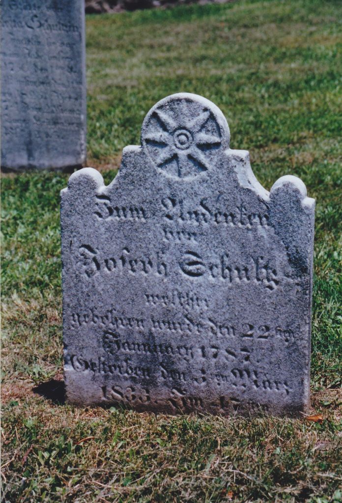 Frederick Schultz was born on August 10, 1784, and died at the age of eleven on December 17, 1794. He is buried at the Washington Schwenkfelder Cemetery.