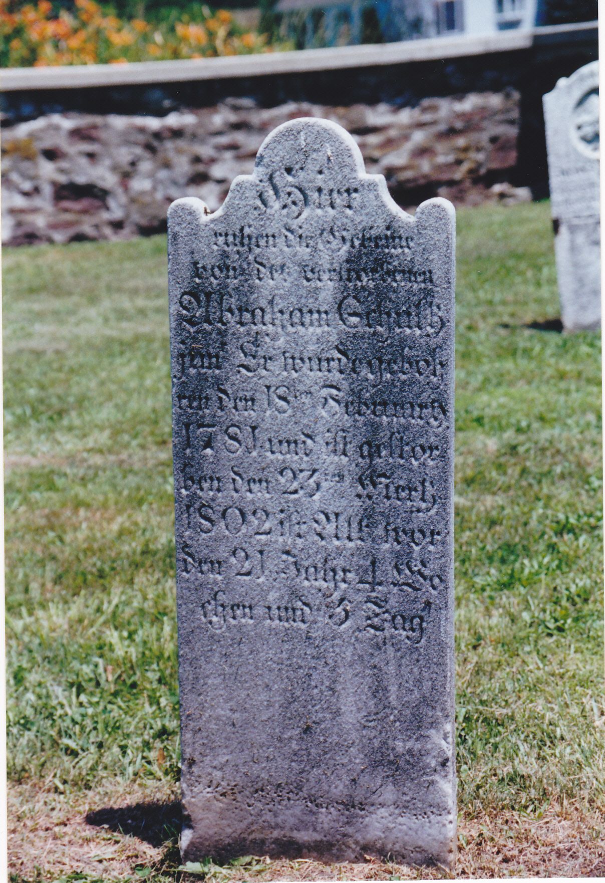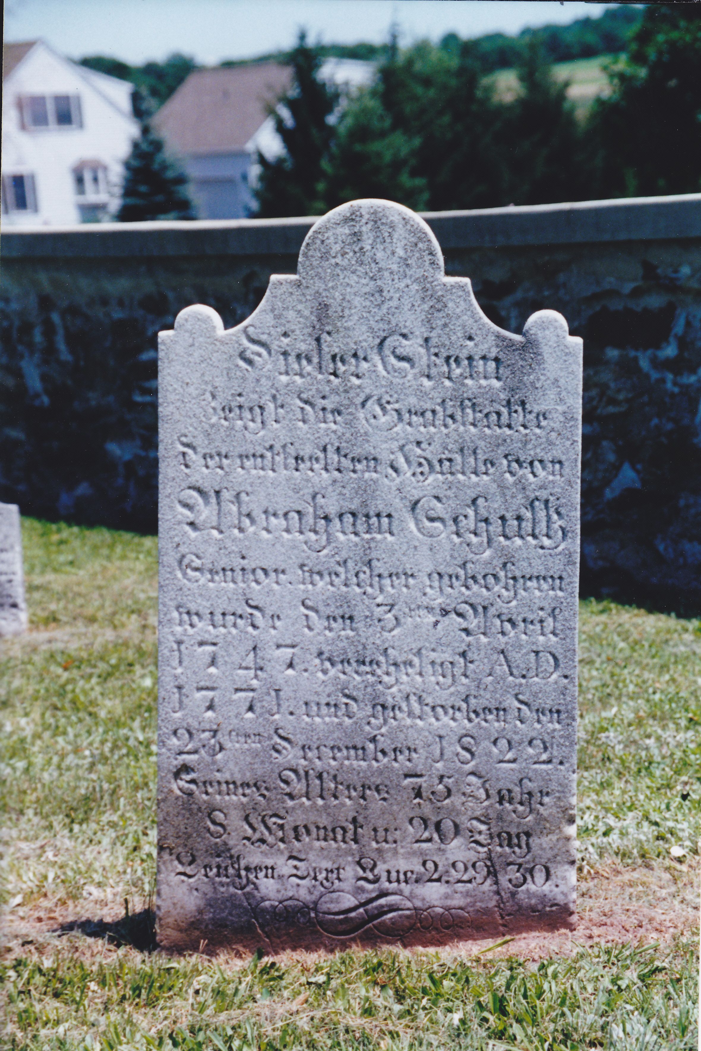 Abraham Schultz was born on February 18, 1781 and died on November 12, 1821. He is buried at the Washington Schwenkfelder Cemetery.