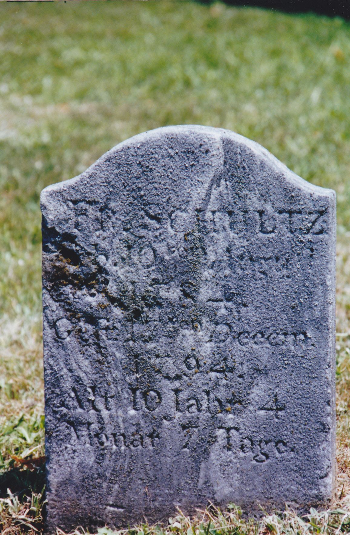 Frederick Schultz was born on August 10, 1784, and died at the age of eleven on December 17, 1794. He is buried at the Washington Schwenkfelder Cemetery.