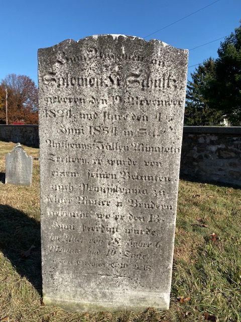 Solomon was born on November 19, 1824 and died on June 4, 1854 in Saint Paul, Minnesota. His remains were transported back to Pennsylvania, and he is buried at the Washington Schwenkfelder Cemetery.