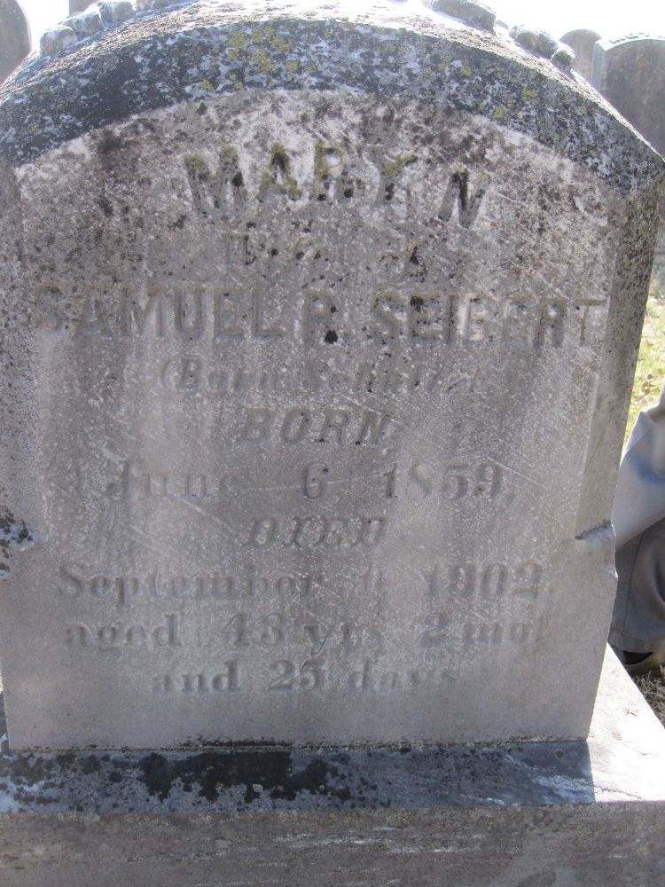 Mary (43-226) was born on June 6, 1859, and died on September 1, 1902 at the age of 43. She married Samuel R Seibert (1860-1880). Both are buried at the Hosensack Schwenkfelder Cemetery.